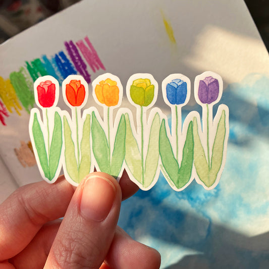 Rainbow Tulips Glossy Vinyl Die Cut Sticker