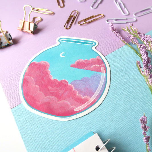 Cotton Candy Clouds and Moon Sky Jar Glossy Vinyl Die Cut Sticker