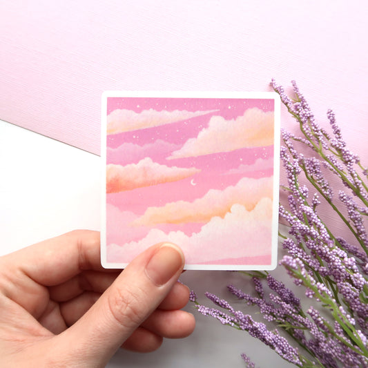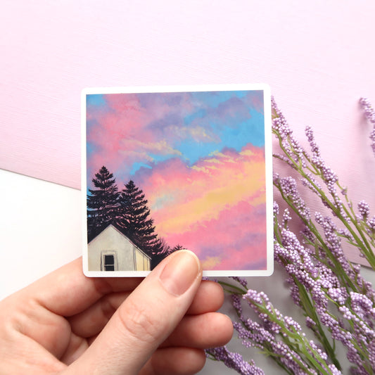 Dreamy Pink Sunset Glossy Vinyl Die Cut Sticker