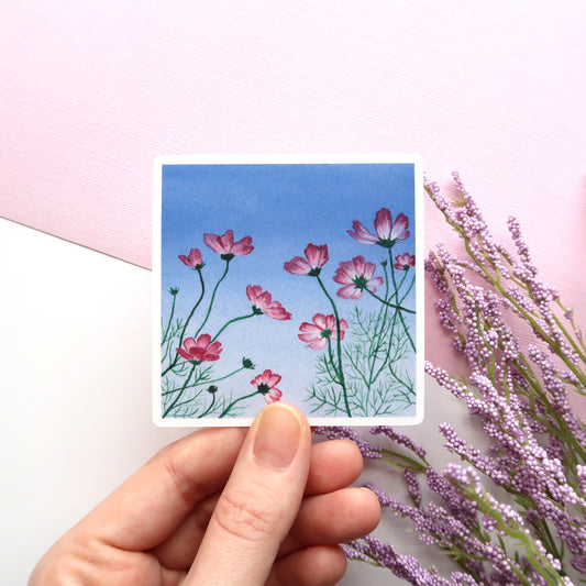 Pink Cosmos at Sunset Glossy Vinyl Die Cut Sticker