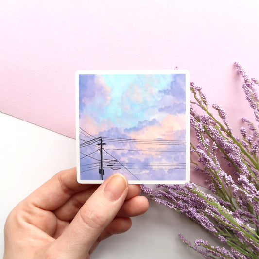 Purple Cloudy Sky Glossy Vinyl Die Cut Sticker