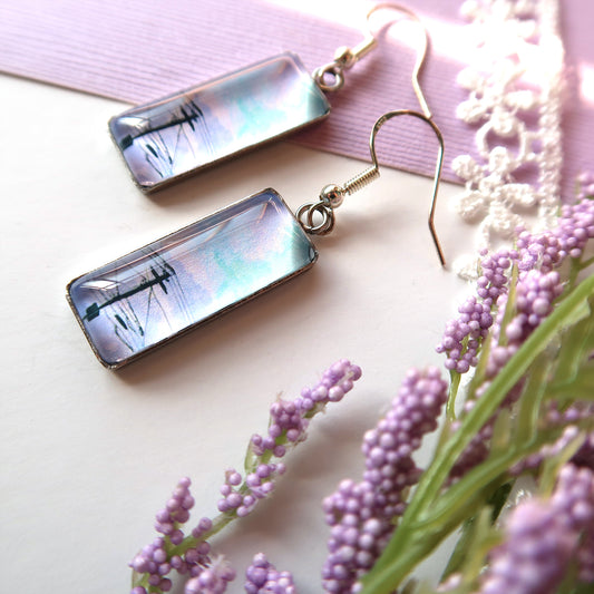 Purple Clouds and Powerlines Rectangle Dangle EarringsRegular price $23.00Regular priceUnit price per-