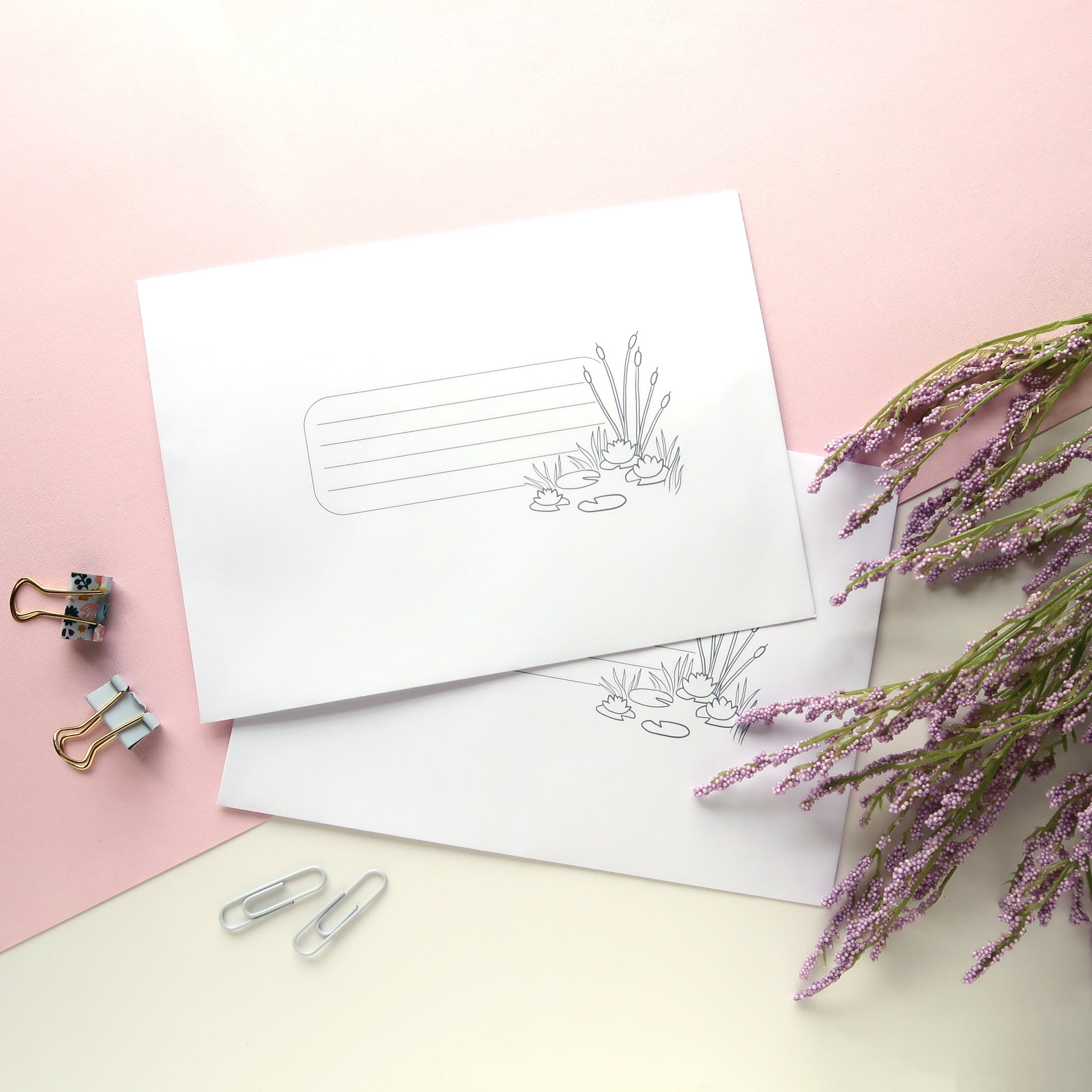 Each stationary set is mailed in a compostable plastic sleeve inside a rigid cardboard mailer to prevent damage while being friendly to our planet.