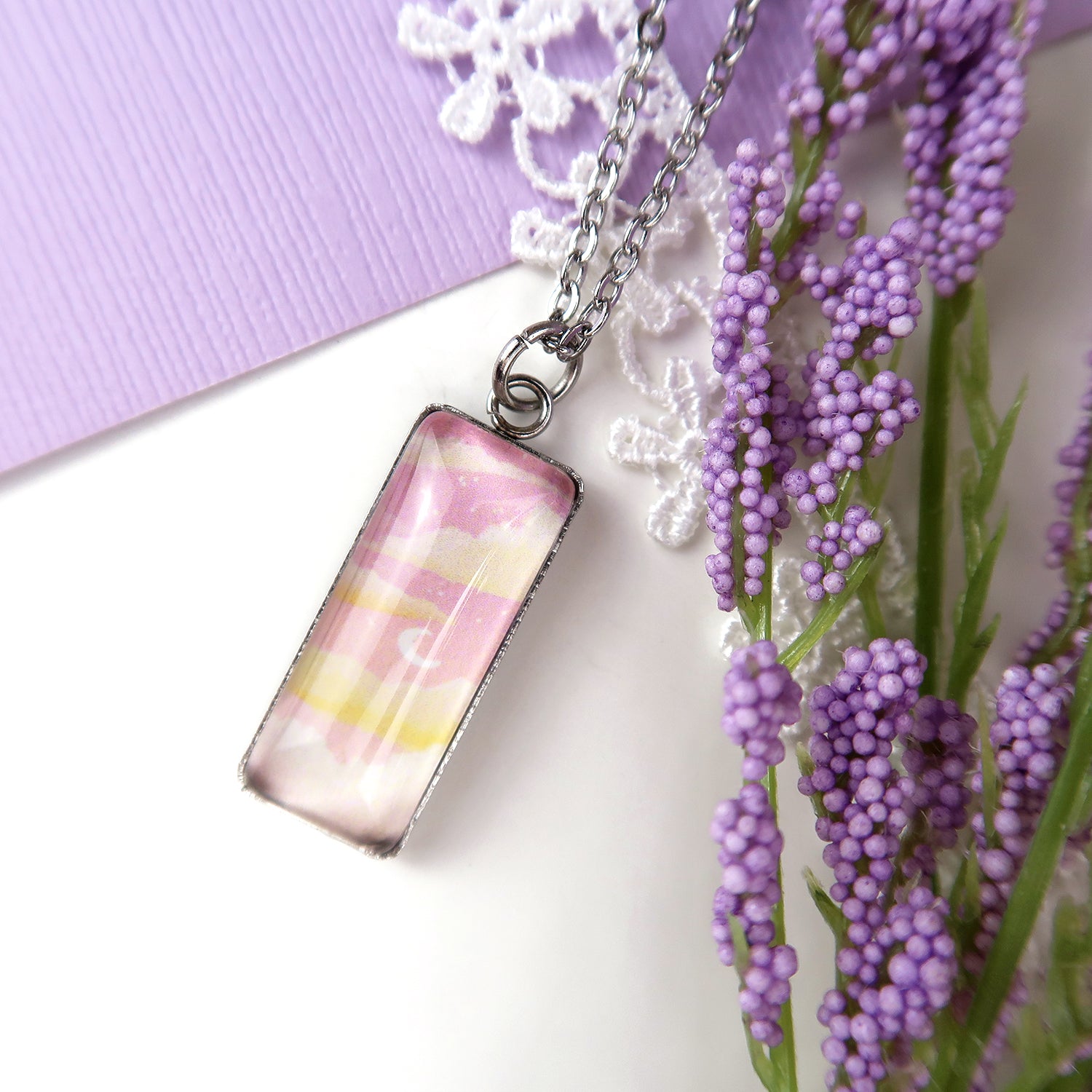 Dreamy Pink Sunset Miniature Watercolor Sky Necklace