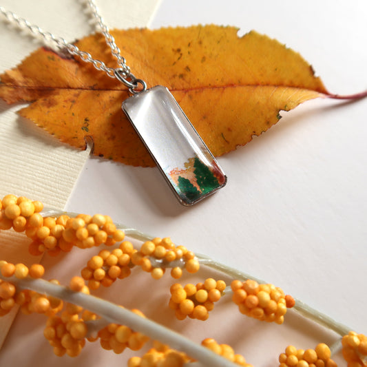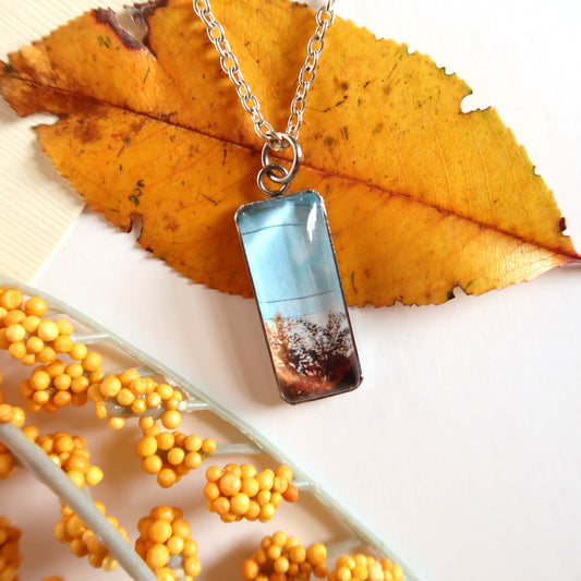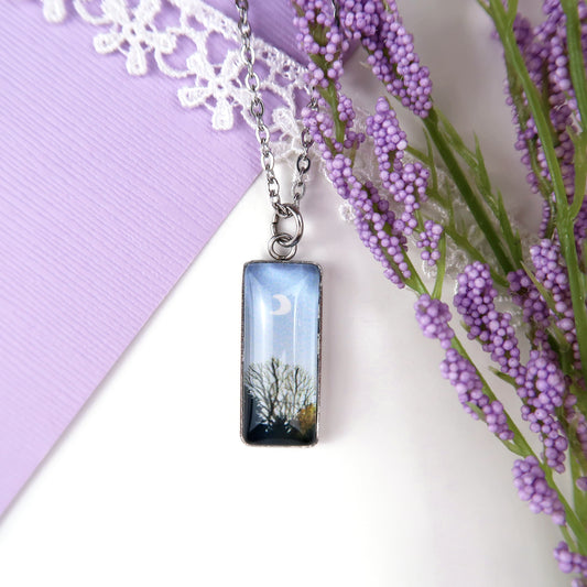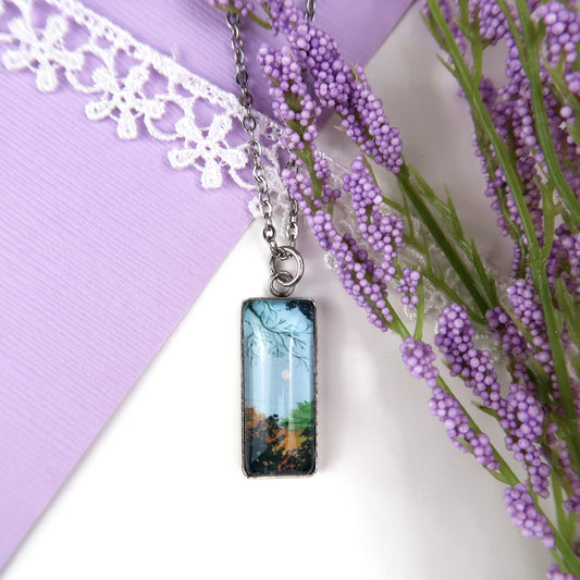Autumn Trees in the Evening Miniature Watercolor Sky Necklace