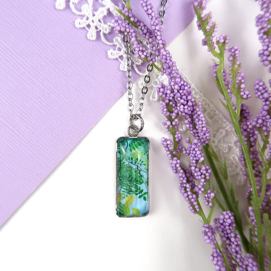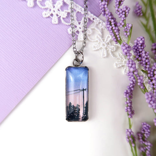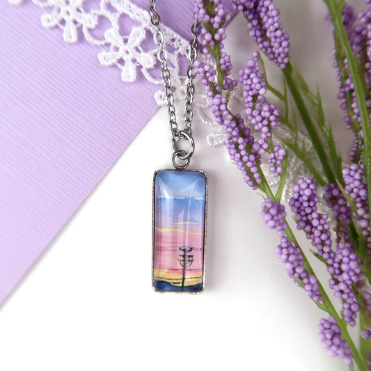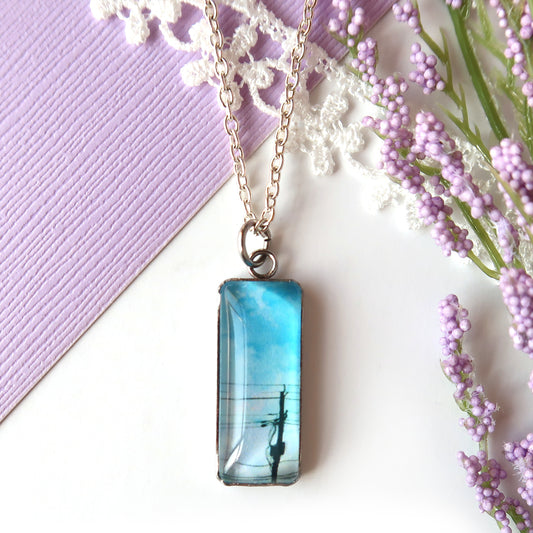 Blue Skies and Powerlines Miniature Watercolor Necklace