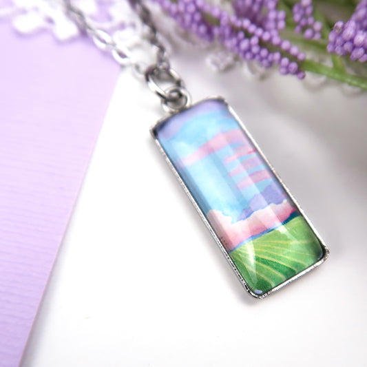 Pastel Cornfields Miniature Watercolor Sky Necklace