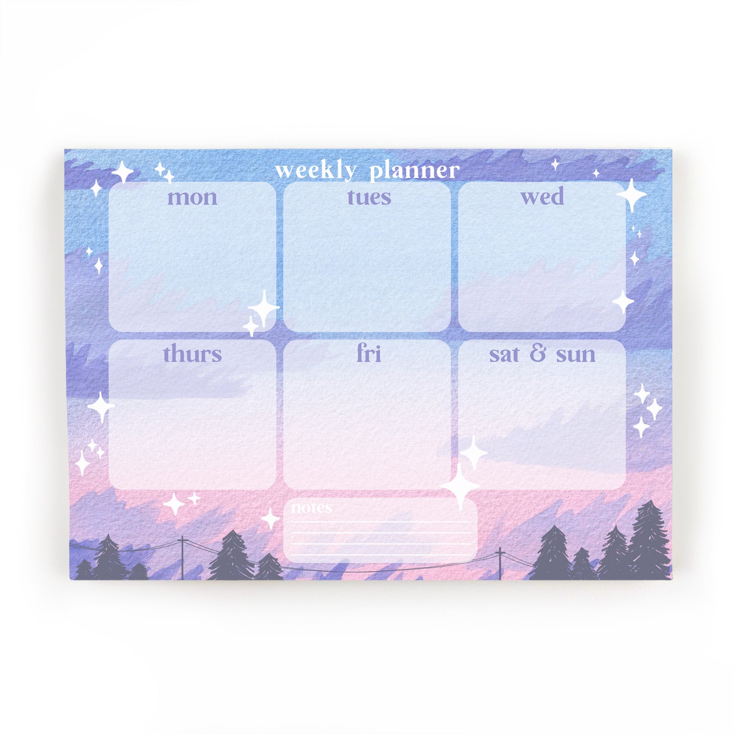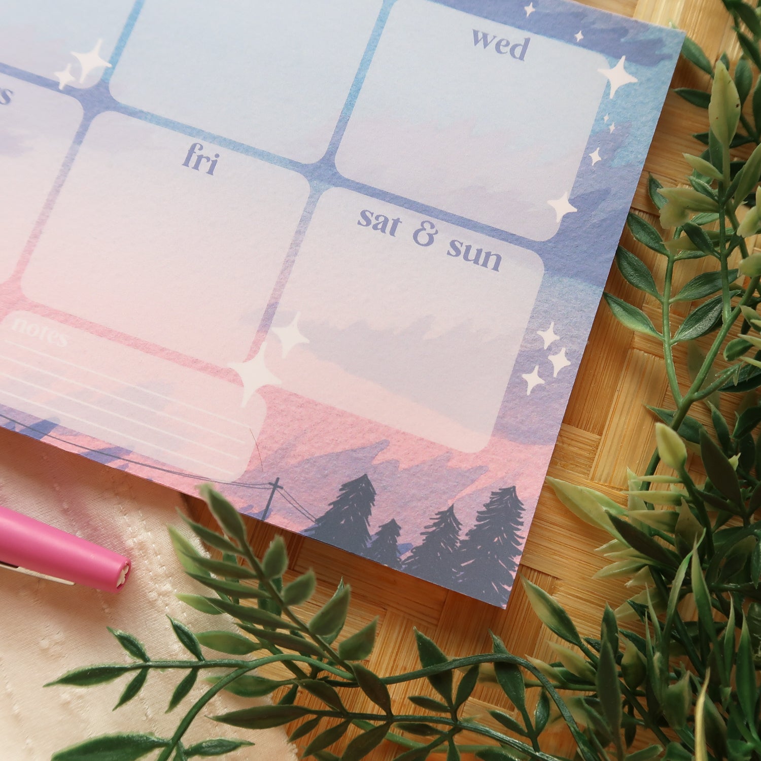 Featuring a delicate set of stars and soft clouds that fade into each other and the distance, this planner will remind you of the beauty we can all find in a calm sky.