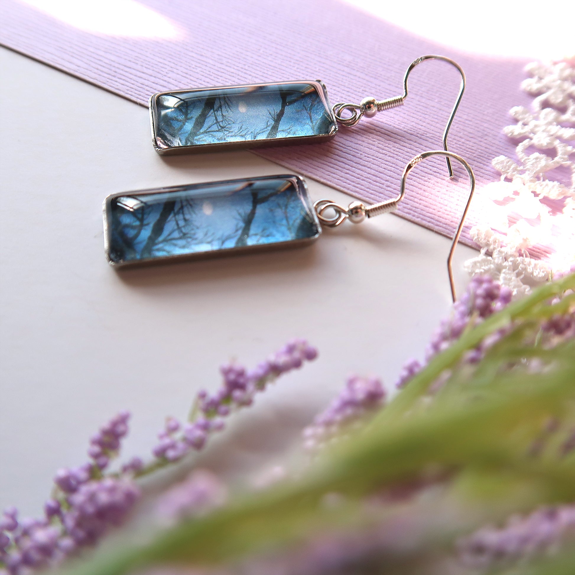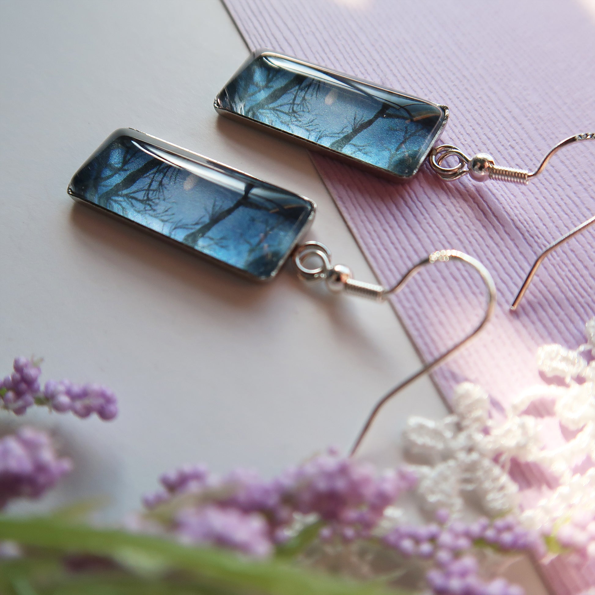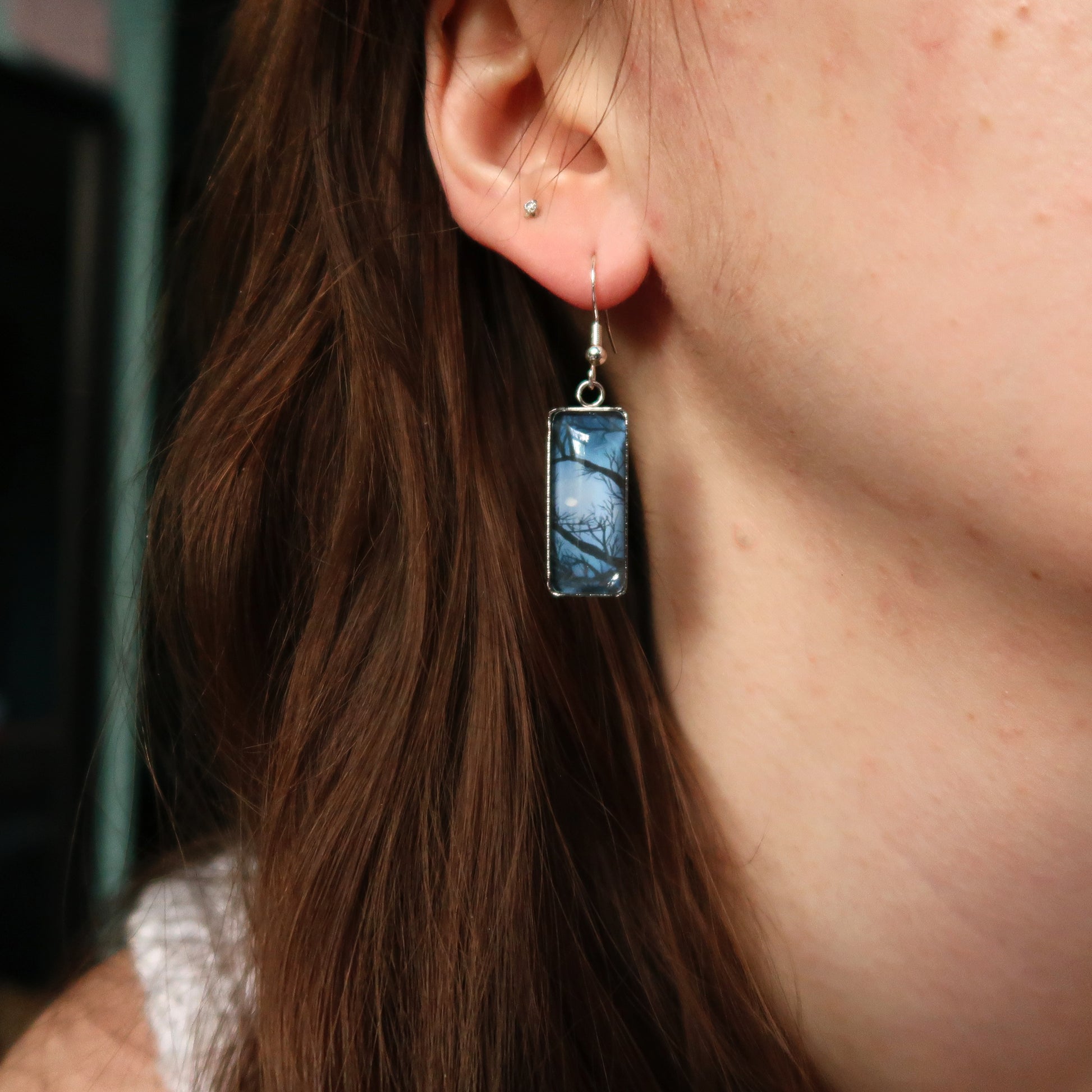 Full Moon Through the Trees Rectangle Dangle Earrings