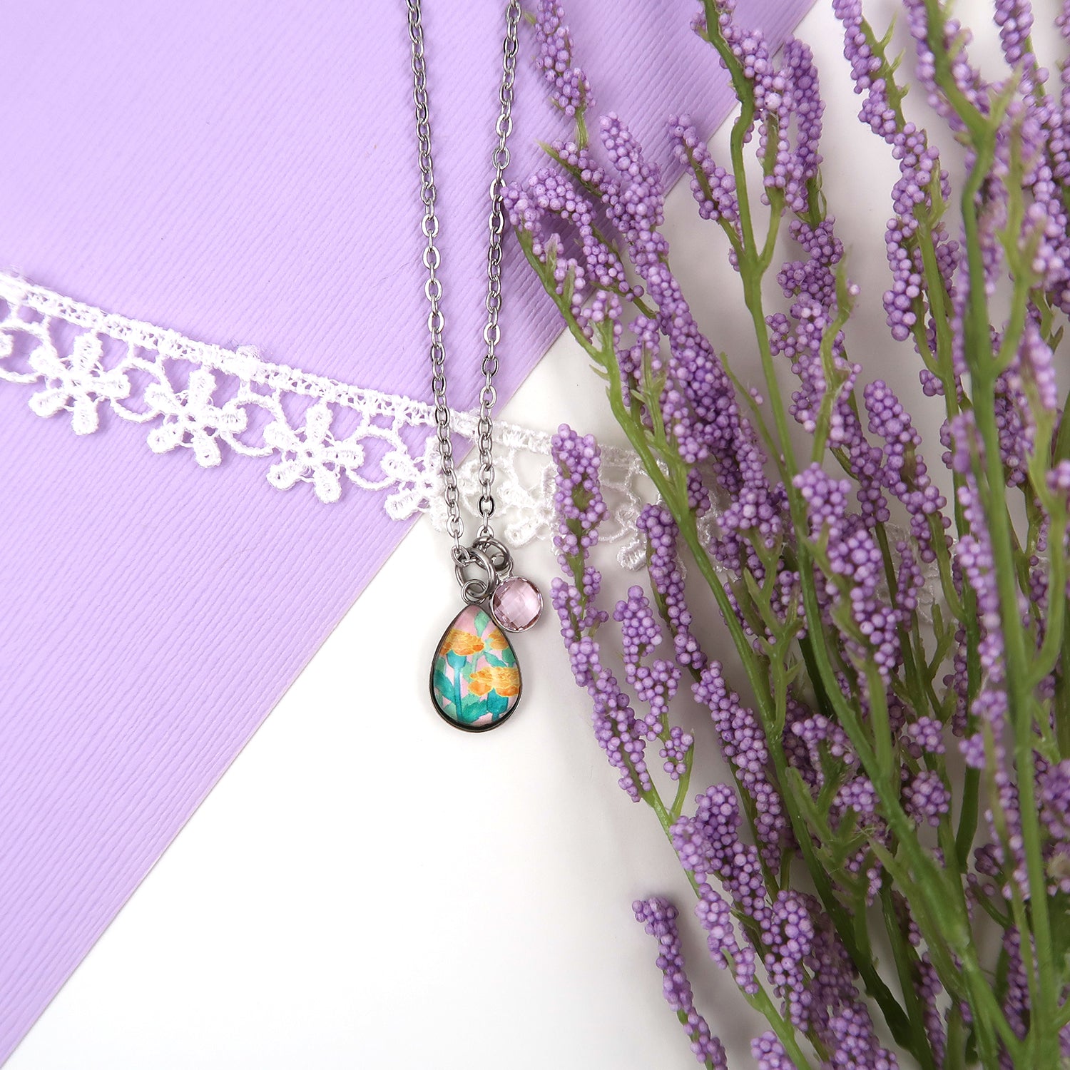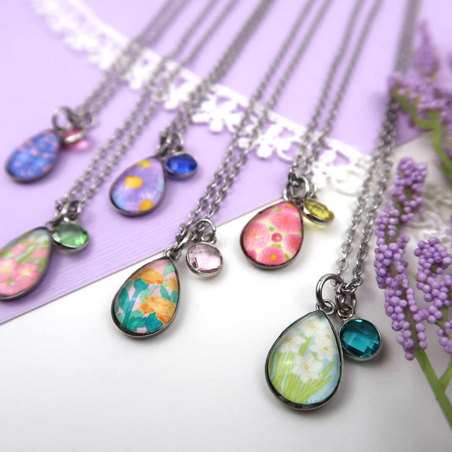 The charm is lovingly handmade with a very tiny print, covered with a glass cabochon and set in a tiny stainless steel bezel. Each necklace will be shipped on a sturdy backing card in a protective bag.