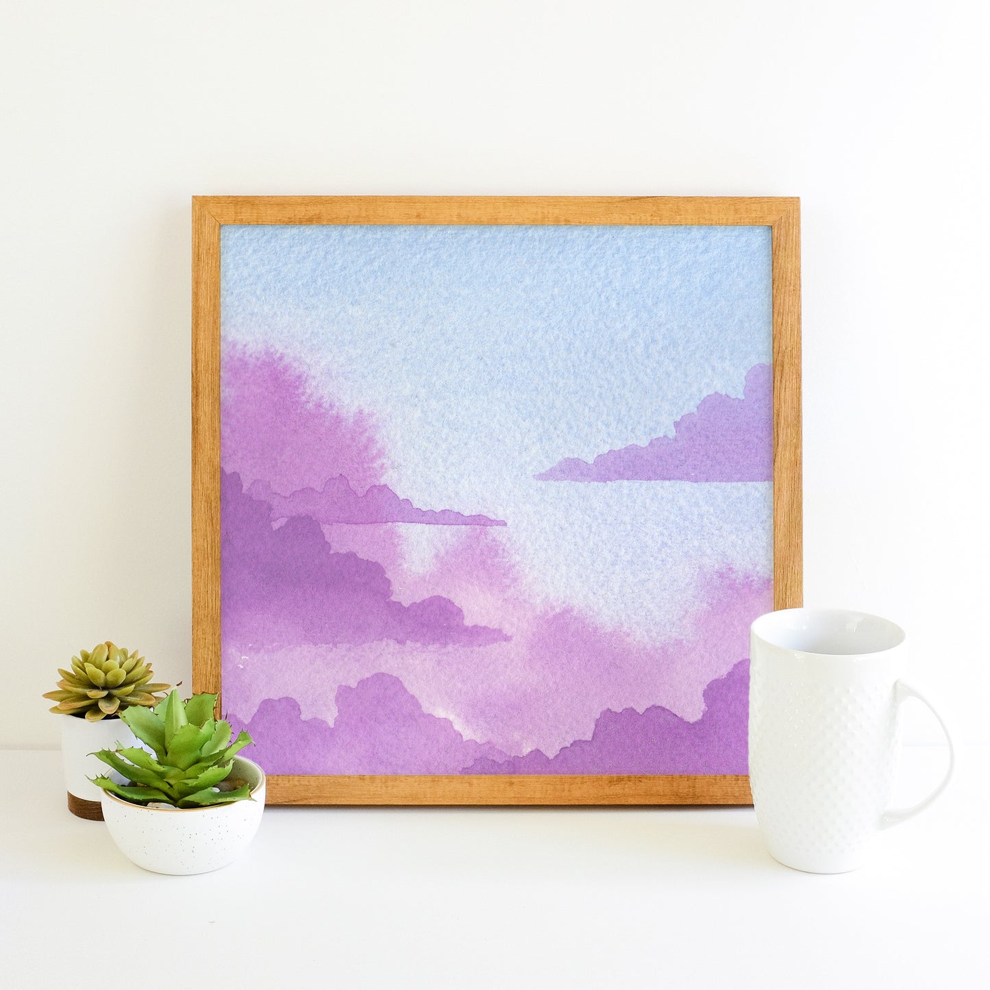 Purple and Blue Pastel Cloudscape - Watercolor Sky Art Print